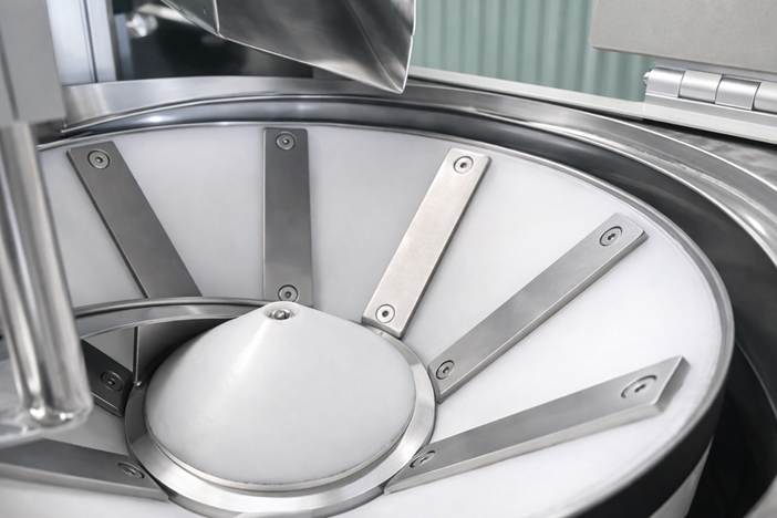 Khác với các dòng máy rung gây ồn và nhanh mài mòn, mâm xoay cấp phôi hoạt động dựa trên nguyên lý chuyển động xoay tạo lực li tâm. Điều này giúp tịnh tiến phôi dọc theo đường dẫn một cách liên tục và ổn định.